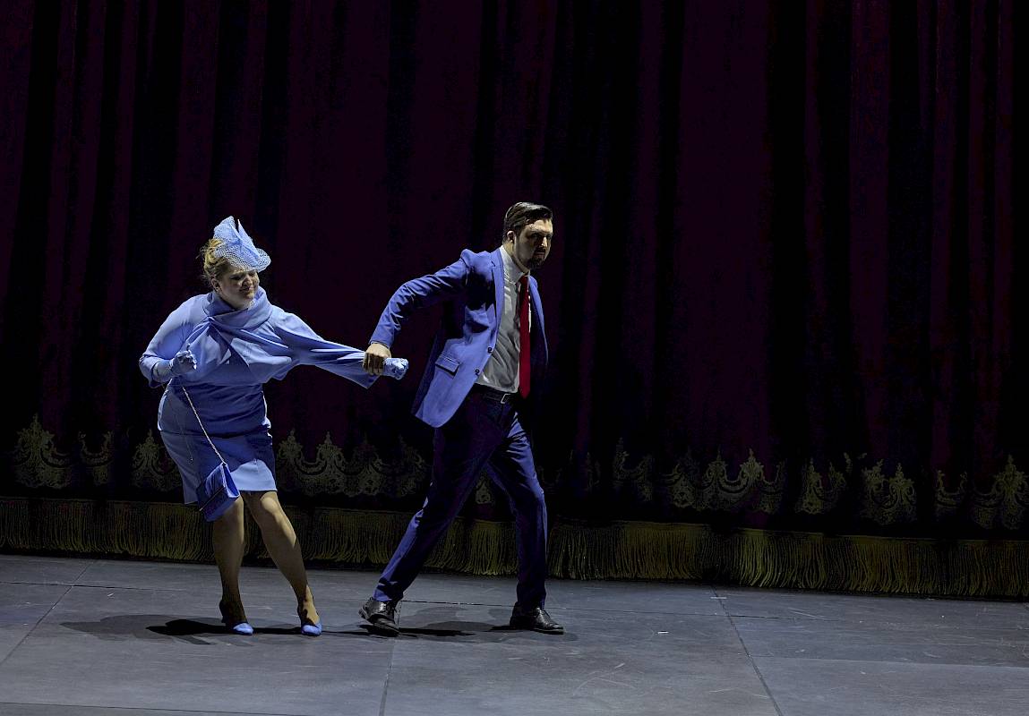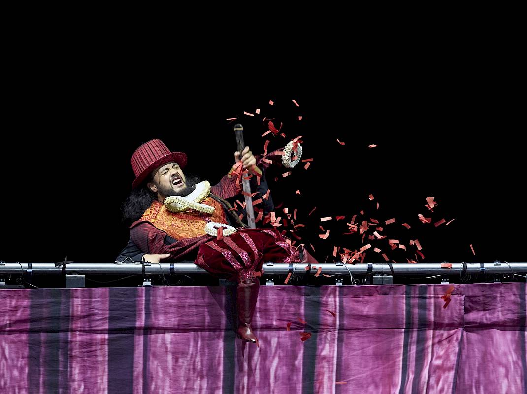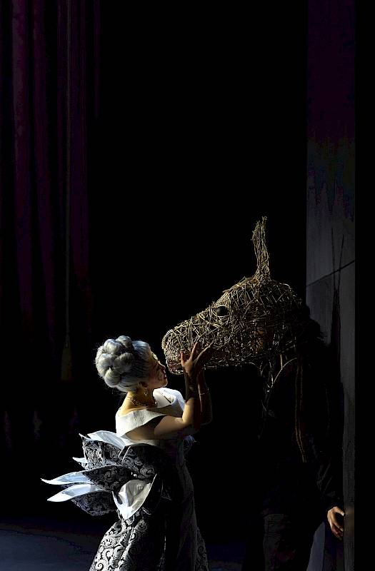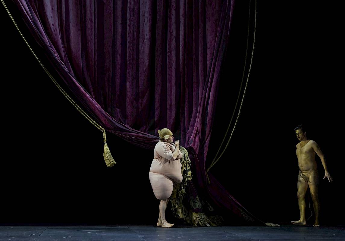 Deutlich erkennen kann man diesen Bezug sicher daran, dass Britten die Partie des Feenkönigs Oberon für einen Countertenor komponierte. In den 1960er-Jahren war dieses Stimmfach noch völlig unüblich und wurde gerade erst wiederentdeckt. Die Feenkönigin Tytania ist bei Britten ein Koloratursopran. In gewisser Weise geht auch mein Inszenierungsansatz von diesem Paar aus: Wir bringen sie als Theaterfiguren aus der Barockzeit auf die Bühne, als Primo Uomo und Primadonna sozusagen. Tytania und Oberon erfüllen den Gestus der Barockoper auch in musikalischer Hinsicht. Zu Beginn des Stücks sind sie im Streit miteinander. Sie singen ein Duett, das sich aber eher wie zwei gleichzeitig gesungene Arien anhört. Sie hören sich gegenseitig nicht zu. Es geht um die grossen Gesten.