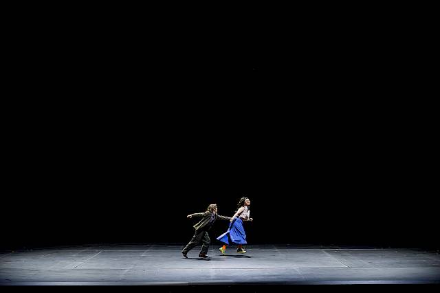 Dann schliesst sich der Vorhang. Wenn er sich wieder öffnet, ist Ariadnes in Schräglage geratenes Schlafzimmer zwar unverändert, aber es spiegelt sich plötzlich riesig in einer direkt an der hinteren Bettkante senkrecht aufragenden Wand. Nach ein paar Sekunden realisiert man, dass es sich gar nicht um einen Spiegeleffekt handelt, sondern dass der Teppich, die verschobenen Schränke, die umgestürzten Lampen und auch das unordentliche Bettzeug auf der hängenden Wand real sind. Bis ins allerkleinste Detail ist die Bühne in der Senkrechten spiegelbildlich nachgebildet und verdoppelt. Ein atemberaubender Effekt. Die Spiegelung ist handwerklich so perfekt gelungen, dass wirklich jede Falte im Bettlaken und jeder Winkel des Lichtscheins aus den umgefallenen Lampen sowohl auf dem fliegenden Teppich als auch auf der fliegenden Wand identisch sind.