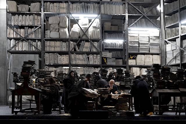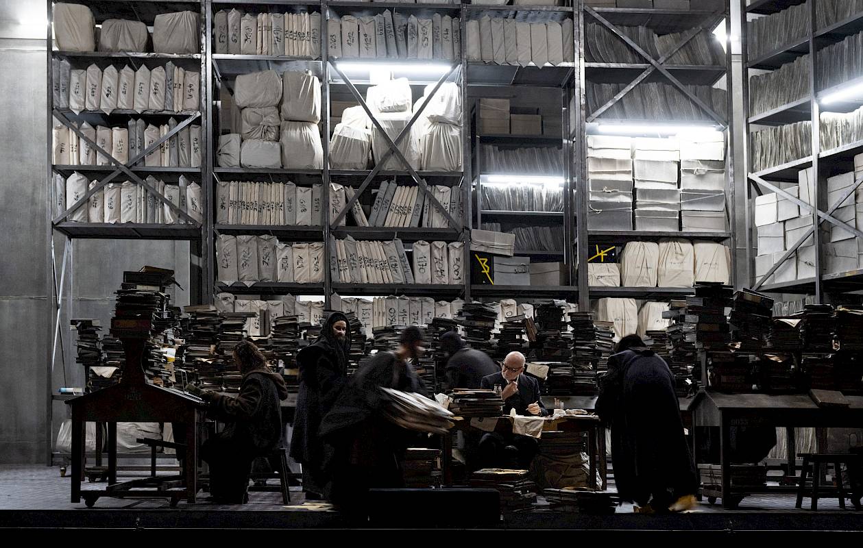 Welcher andere Komponist würde sich trauen, eine fast 20-minütige Szene über einen alten Mönch zu schreiben, der an der Chronik Russlands sitzt? Was für eine kühne Idee! Ich kenne nichts Vergleichbares in der Opernliteratur. Dramatisch passiert eigentlich nichts. Und trotzdem ist kein einziger Takt belanglos, sondern alles ist hochemotional und hochkomplex. Als Zuschauer sitzt man gebannt auf der Stuhlkante. Das Dokumentieren des Erlebten hat sich Pimen zu seiner Lebensaufgabe gemacht. Er weiss, dass er bald sterben wird und mit seinem Opus magnum wohl nie zu Ende kommen wird. Die Szene führt uns aber zu einer noch viel grösseren Frage, die dieses Stück aufwirft, nämlich: Wer schreibt eigentlich Geschichte und für wen? Wie wird sie interpretiert und wie erinnert? Was ist die Wahrheit? Geschichte ist nie objektiv. Geschichte ist für mich wie eine Parade von Geistern. Es ist eine theatralische Metapher und die Protagonisten der Geschichte gleichsam die Geister auf dieser Bühne, die ihre Versionen der Ereignisse zu artikulieren versuchen. Gemeinsam mit meinem Bühnenbildner Rufus Didwiszus sind wir daher auch auf die Bibliothek als Raum gekommen, einem magischen Ort. Und da kann es durchaus sein, dass die Bücher, dass die Geschichte zu singen anfängt...