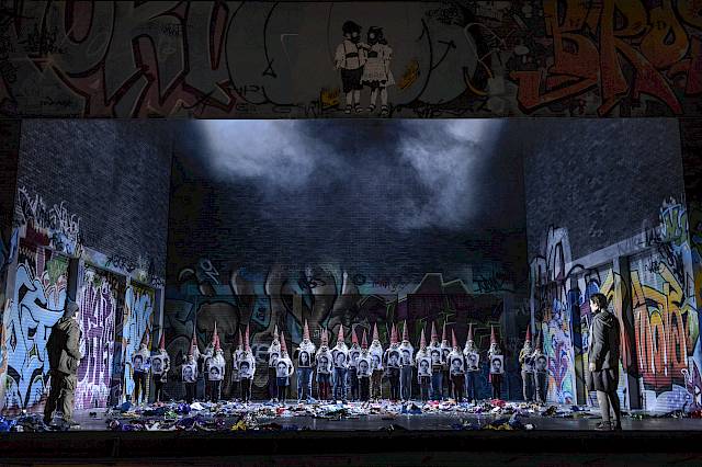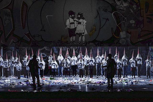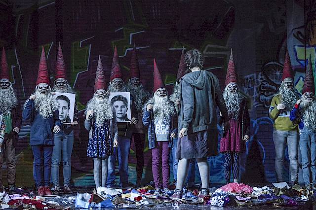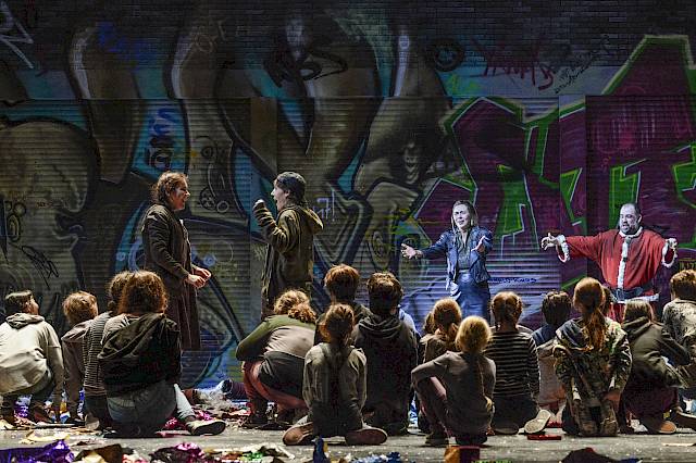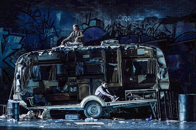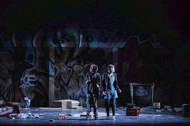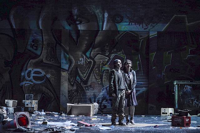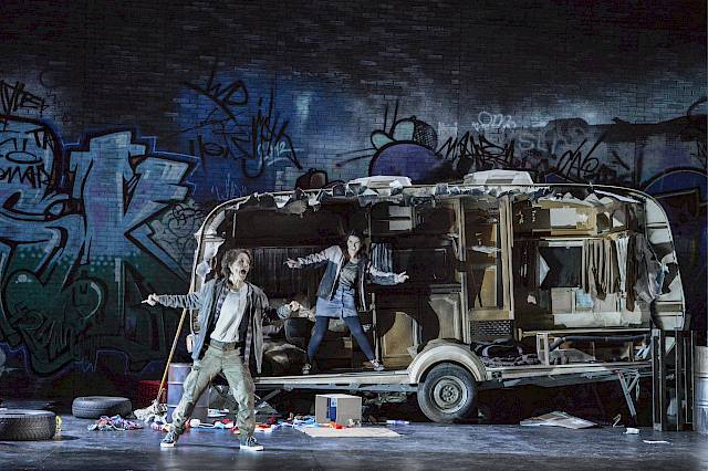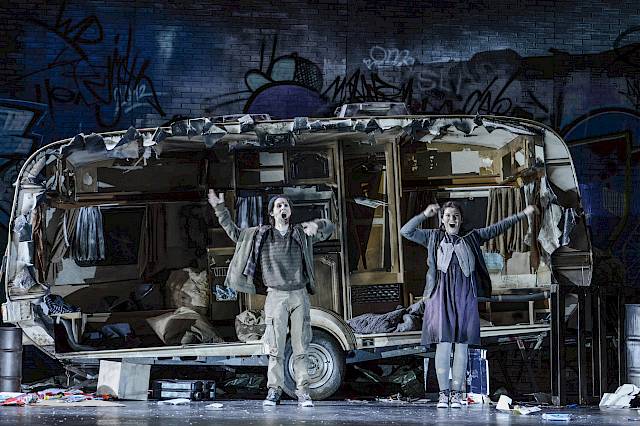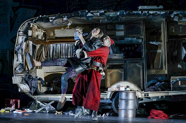 Der Wohnwagen bedeutet nicht etwa, dass es sich um Fahrende handelt. Wir wollen damit zeigen, dass diese Familie tatsächlich nicht einmal das Geld besitzt, um eine normale Miete zu zahlen. Stattdessen besetzt sie temporär einen Wohnraum, den sie so vorgefunden hat. Es geht uns nicht darum, einen genau definierten Handlungsort nachzubilden, sondern einen allgemeinen Eindruck von einer Welt zu geben, in der ein Leben in Armut Realität ist. Es ist das Milieu der Vorstädte, und wir alle wissen, dass ärmliche Verhältnisse, vernachlässigte Kinder, Gewalt, Drogen und Alkoholismus – alles Themen, die bei Humperdinck vorkommen – Probleme sind, mit denen man dort alltäglich zu kämpfen hat. Ich finde es wichtig, diese Tatsachen in einem heutigen Kontext zu zeigen. Ein folkloristisches Spiel auf die Bühne zu bringen, wäre für mich nicht der richtige Weg.