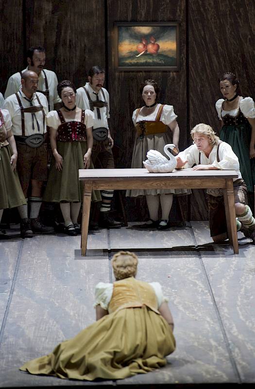 Ich glaube grundsätzlich, dass man im Theater die Geschichten so erzählen muss, dass sie dem Zuschauer nahekommen und sich mit seiner Lebenserfahrung hier und heute verbinden. Das frühe Mittelalter mit seinen komplizierten Ritualen und Hierarchien sagt uns sehr wenig. Wir haben uns daher entschieden, die Konflikte sozusagen zu verkleinern und die grossen politischen Fragestellungen in eine Dorfgemeinschaft zu verlegen, wo es viel direkter und emotionaler zugeht. Der Vorteil eines solchen theatralischen Verfremdungsverfahrens ist, scheinbar bekannte Dinge in einen unerwarteten Kontext zu setzen, so dass sie fremd wirken, dadurch neu erkannt und besser durchschaut werden können. Ich finde, dass die politischen Fragestellungen, die Wagner im Lohengrin aufwirft, für uns heute wieder ganz unmittelbar aktuell sind. Mir ist aber an der Idee, das Stück in einem Bergdorf spielen zu lassen, noch ein anderer Punkt wichtig: Ich glaube an das fantastische Element in Lohengrin, und darum muss man glaubhaft machen, dass das Wunder tatsächlich stattfinden kann. Bei einem von der städtischen Welt weit abgelegenen Dorf ist es gut vorstellbar, dass dort Leute noch an Wunder glauben und diese auch persönlich bezeugen. Es gibt – oder gab jedenfalls bis vor nicht allzu langer Zeit – noch diesen naiven Glauben, wie er sich in Elsa ausdrückt: ein Vertrauen in den lieben Gott, der die Menschen nicht verlässt. Bei unserer Vorbereitung der Produktion stiessen wir auf Votivbilder, aus denen dieser einfache Gottesglaube spricht. Manche mögen diese naive Malerei belächeln, aber mich rührt ihre Heilsgewissheit an. Darum haben wir ein solches Element aufgenommen und Elsa zugeordnet. Wenn der Vorhang aufgeht, mag kurz der Verdacht aufkommen, als würden wir eine Ironisierung der Geschichte und der Figuren beabsichtigen. Nichts liegt mir ferner: Ich liebe all diese Figuren und ich fühle mit ihnen, und ich will, dass es dem Zuschauer ebenso geht.