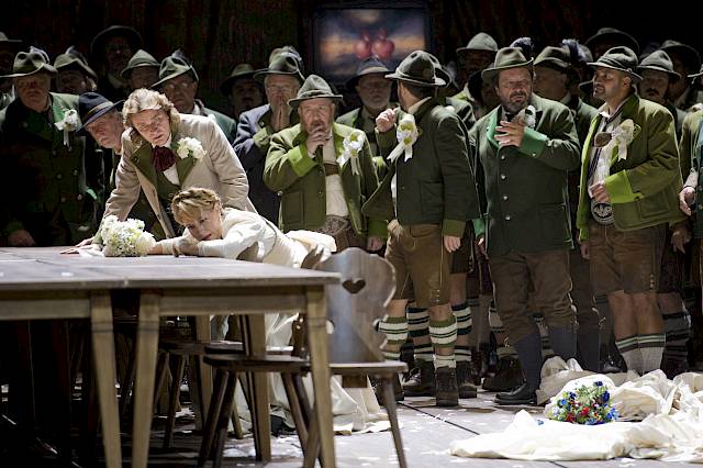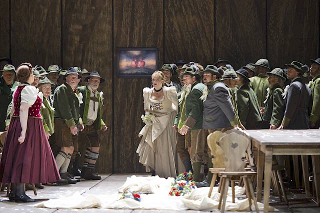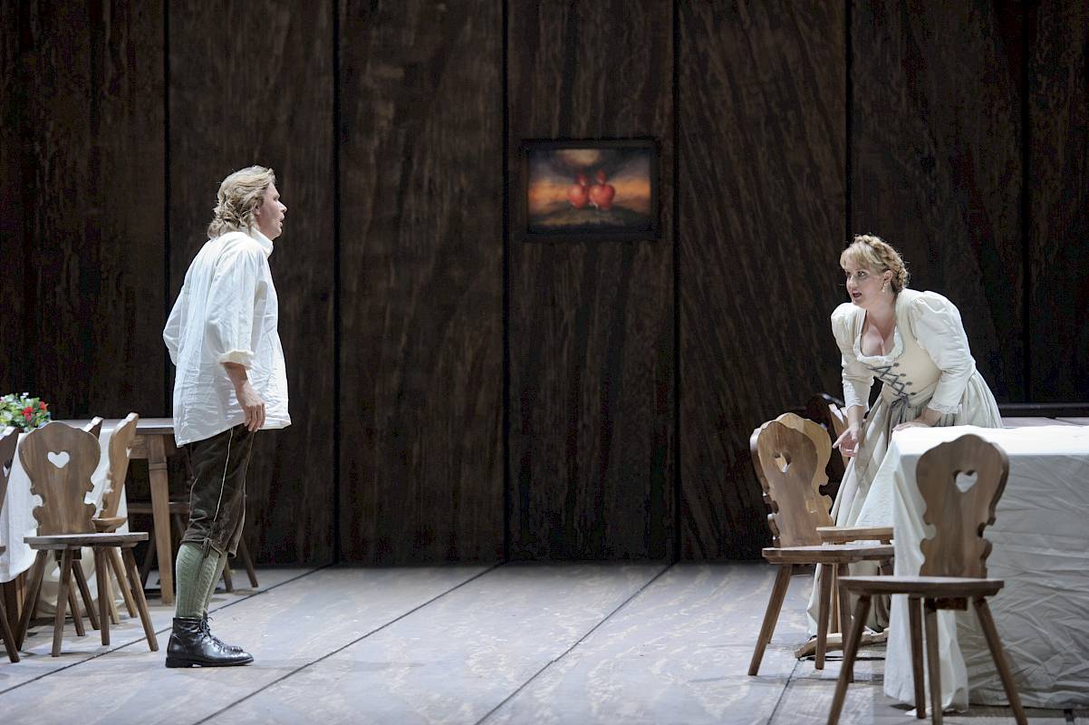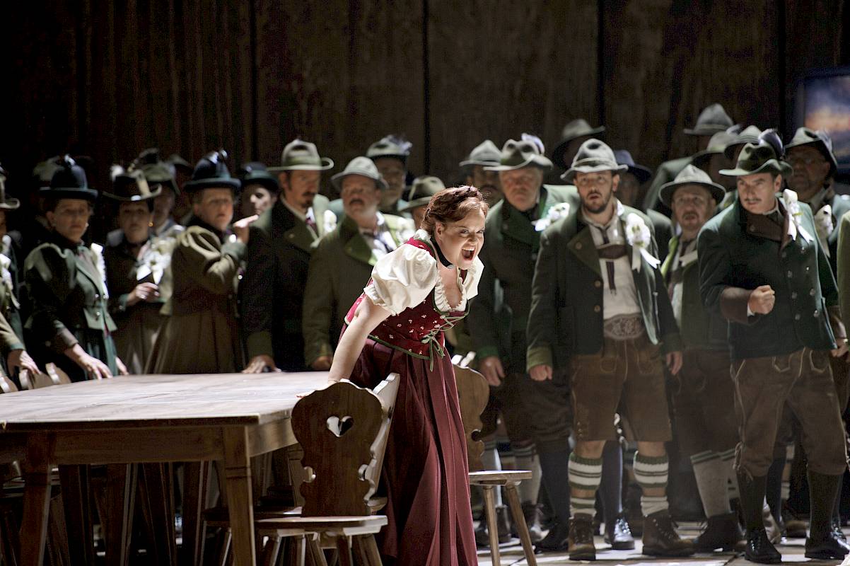 Unsere Zürcher Produktion spielt im Landgasthof eines alpenländischen Bergdorfs, weil sich darin die für die Oper wichtige Distanz zwischen den Einheimischen und den Fremden deutlich machen lässt. Man ist mit einem solchen Provinz-Milieu im Hinterkopf immer geneigt, zu behaupten, die Hinterwäldler seien auch die Reaktionären. Stimmt das?