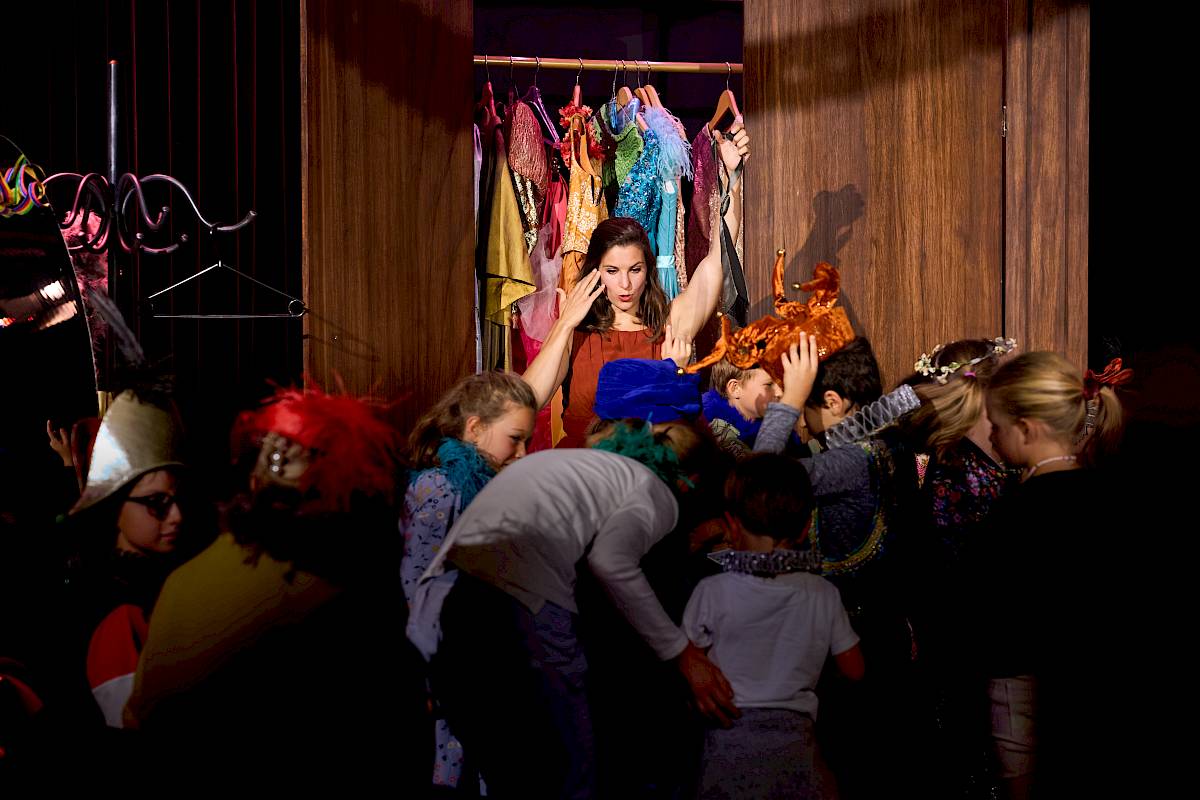Meine Mama schlüpft im Laufe eines einzigen Tages in ganz viele verschiedene Rollen: mal spielt sie mit uns Kindern und lacht aus vollem Halse, mal ist sie aufbrausend und böse wie eine Hexe, mal schlendert sie wie eine Diva mit uns durch die Strassen, mal trällert sie so laut in der Badewanne, dass der Nachbar vorbeischaut und fragt, ob alles in Ordnung sei… Am Abend aber verwandelt sich Mama in eine glamouröse Opernsängerin. Dann steht sie auf der Bühne und begeistert das Publikum. Besonderen Eindruck hinterlassen ihre unzähligen tragischen, aber auch ulkigen Sterbeszenen. Bestimmt könnt ihr euch vorstellen, dass das Leben mit Mama manchmal sehr anstrengend sein kann, aber langweilig wird uns nie!