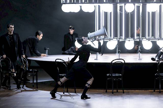 Ganz glauben muss man ihm das nicht. In Wahrheit ist Marcos Morau ein sehr weit vorausschauender Ingenieur seiner Stücke, ein Konstrukteur, der stets mit einer bereits deutlich entwickelten Idee auf die Proben kommt und wie ein Architekt die Gründe für jede Bewegung, jeden Lichtstand, jedes Bühnenrequisit genau vor Augen hat. Sein Team, seine Familie, seine Freunde, wie er sie abwechselnd nennt, «La Veronal», ist kein Kollektiv, wie manche meinen. Es ist eine Versammlung von Spezialistinnen und Spezialisten, die gemeinsam der Vision dieses Choreografen folgt, der in sich schlüssige, mitunter auch in sich selbst verschlossene, immer aber starke Bilder schafft.