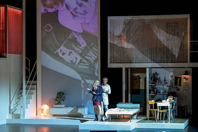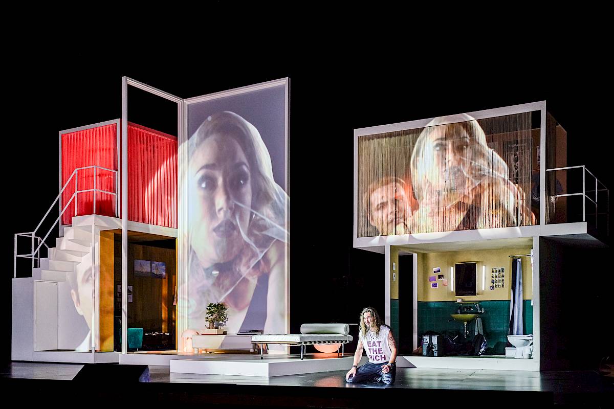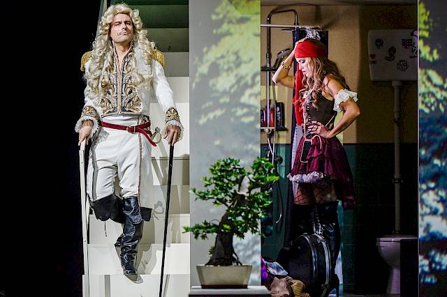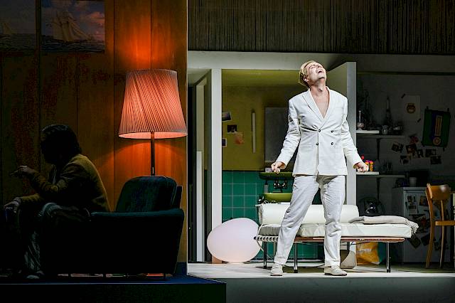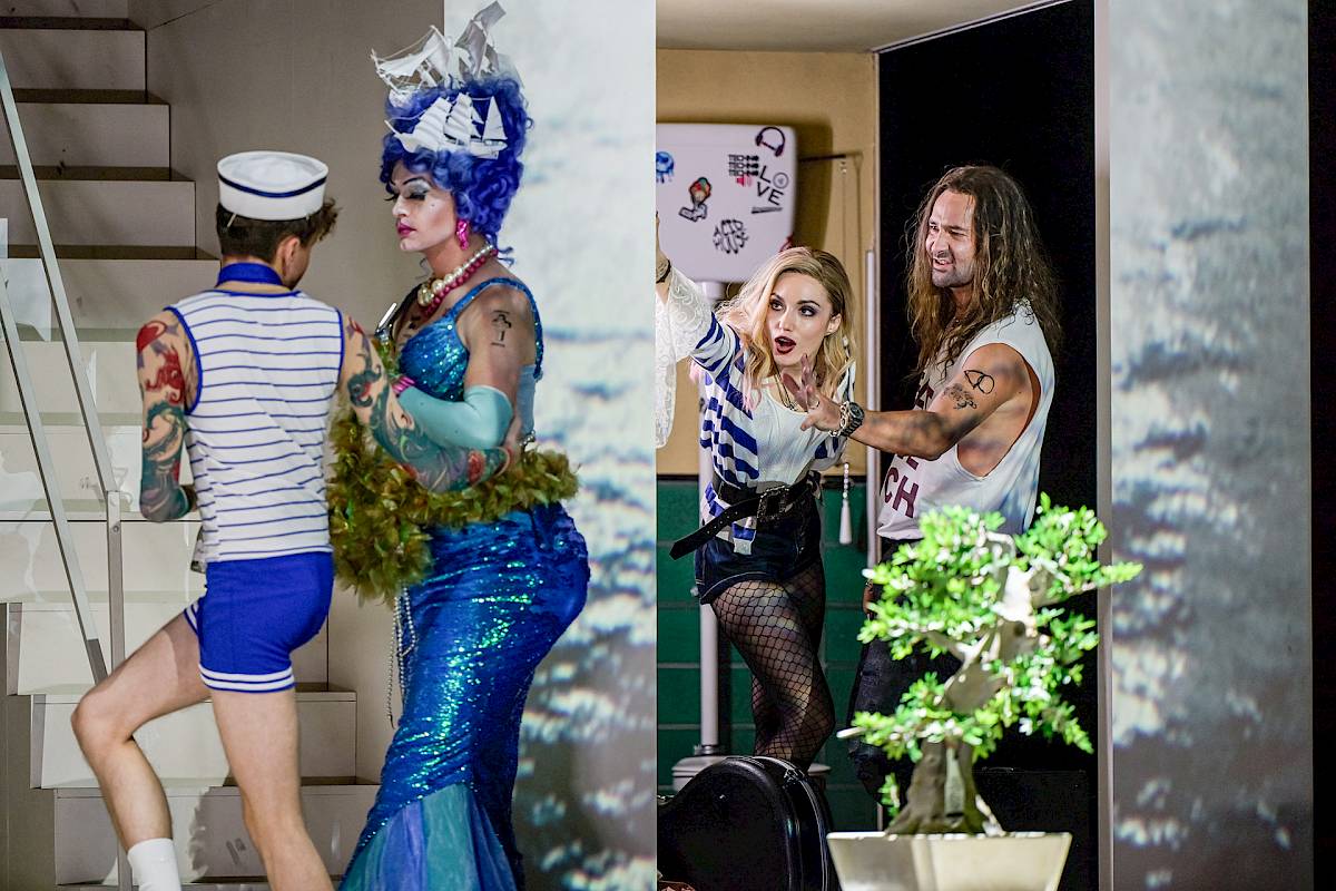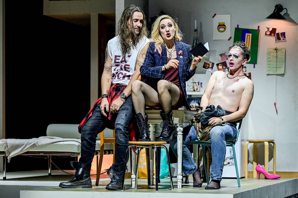 Nina Russi: Die beiden Brüder Serse und Arsamene zum Beispiel sind in ihren Arien aber doch auch musikalisch gezeichnet und voneinander abgegrenzt. Arsamene hat auffällig viele langsame, tiefe Arien, die auf einen eher depressiven, melancholischen Charakter hinweisen. Deshalb ist Arsamene in unserer Inszenierung ein Singer-Songwriter, ein Künstlertyp, der immer wieder mit sich hadert und an allem zweifelt. Er leidet sehr unter der Rivalität mit seinem Halbbruder und ist sich nicht sicher, ob ihm Romilda wirklich die Treue hält, nachdem ihn sein Bruder aus dem Haus gejagt hat. Im Gegensatz zu Serse ist Arsamene viel reflektierter, tiefgründiger, und er ist eindeutig der Sympathieträger des Abends.