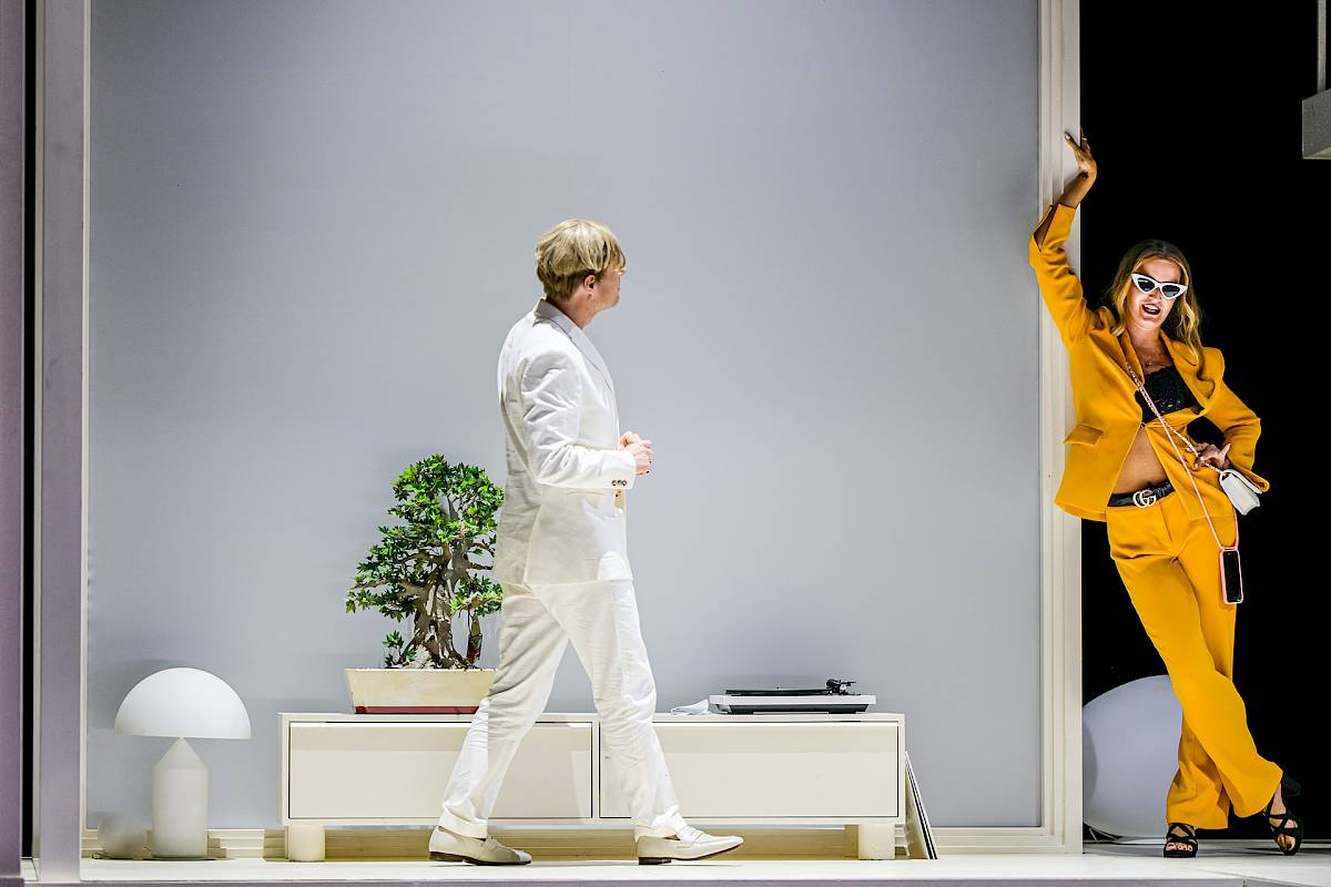 Nina Russi: Händels Serse kommt ganz ohne barocken Theaterzauber aus. Manchmal sind die theatralen Situationen sogar beinahe Alltagssituationen nach empfunden. Für mich sind das allesamt sehr heutige Figuren, es sind moderne Konstellationen, und es werden heutige Themen verhandelt. Das hat mich von Anfang an fasziniert. Es war für uns als Team klar, dass wir diese Geschichte mit modernen Mitteln und modernen Menschen erzählen wollen. Es sind junge Menschen, die auf Identitätssuche sind, dabei tiefe Sehnsucht haben nach Liebe und der Erfüllung ihres Begehrens. Händel zeigt in jedem Moment: Verliebt zu sein ist ein Ausnahmezustand. Serses Leidenschaft macht ihn zum Beispiel geradezu blind gegenüber allen und allem. So kann man durchaus verstehen, warum Serse seine von ihm verstossene Verlobte Amastre nicht erkennt, als sie in einer Tarnidentität wieder die Nähe zu ihm sucht.