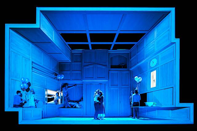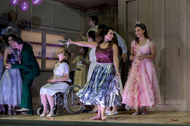 KG: Zum Beispiel im Wechsel vom ersten zum zweiten Akt. Da wird deutlich, wie extrem die Lebensperspektive in dieser Welt zusammengeschnurrt ist. Im ersten Akt erscheint alles lebendig und erwartungsvoll und ein bisschen chaotisch. Die jungen Menschen gehen zu einem Ball. Im zweiten Akt erklingt plötzlich die Kirchenorgel. Es wird eine Goldene Hochzeit gefeiert, und das Leben scheint schon vorbei zu sein. Gerade war man frisch verliebt, jetzt ist man schon 50 Jahre verheiratet. Eben noch gaben die Kinder den Ton an, jetzt haben alle graue Haare. Erzählt das nicht sehr viel über das Leben in Wetzlar?